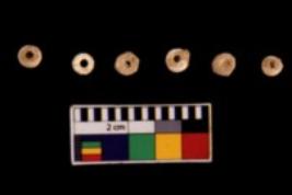 | Description / विवरण | Specimens of disc shaped perforated steatite beads. |