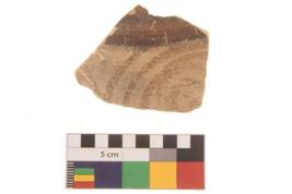| Description / विवरण | Specimen of black on red ware with decorative geometric Spirals painting. |