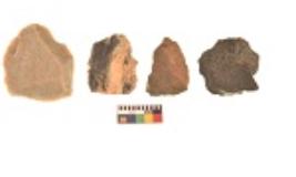 | Description / विवरण | There are n 4 utilized flakes. There are multi directional irregular scar pattern on both dorsal and ventral face of the flakes. Three have flat base and one has blunted edges. |