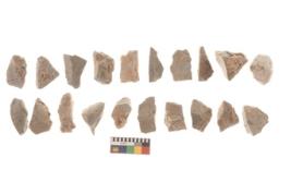 | Description / विवरण | There are n 20 utilized flakes. There are multi directional irregular scar pattern on both dorsal and ventral face of the flakes. All are sharp edges, and few have broken tip. |