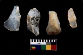 | Description / विवरण | There are n 4 cores; there are multidirectional irregular scar pattern on them. The reverse bulb and platform can be seen. |