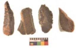 | Description / विवरण | There are n 4 utilized flakes. There are multi directional irregular scar pattern on both dorsal and ventral face of the flakes. Two are tapering at one end and two have sharp edges. |
