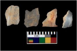 | Description / विवरण | There are n 4 utilized flake cores. There are multi directional irregular scar pattern on them. Two are tapering at one end and two have blunted edges. |