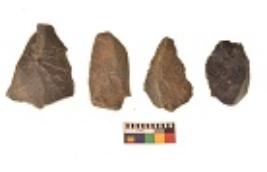 | Description / विवरण | There are n 4 utilized flakes. There are multi directional irregular scar pattern on both dorsal and ventral face of the flakes. Three are tapering at one end and one has sharp edge. |