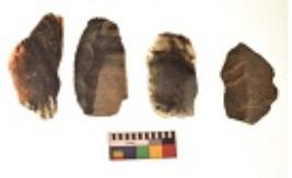 | Description / विवरण | There are n 4 utilized flakes. There are multi directional irregular scar pattern on both dorsal and ventral face of the flakes. Three are tapering at one end and one has sharp edge. |