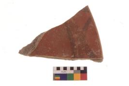 | Description / विवरण | Specimen of Potsherd black on red painted pottery. It is fine fabric in sharp contrast with painted design are executed in black pigment. |