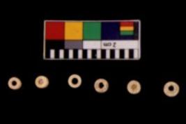 | Description / विवरण | Specimens of disc shaped perforated steatite beads. |