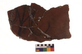 | Description / विवरण | Specimen of Potsherd black on red painted pottery. It is fine fabric in sharp contrast with painted design are executed in black pigment. |