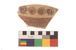 | Description / विवरण | Specimen of black on red ware with decorative geometric Parallel lines with dark dots painting. |