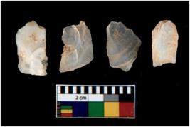 | Description / विवरण | There are n 4 utilized flake cores. There are multi directional irregular scar pattern on them. Two are tapering at one end and two have blunted edges. |