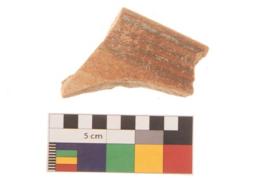 | Description / विवरण | Specimen of black on red ware with decorative geometric Four parallel lines painting. |