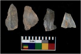 | Description / विवरण | There are n 4 utilized flake cores. There are multi directional irregular scar pattern on them. Two are tapering at one end and two have blunted edges. |