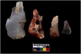 | Description / विवरण | There are n 4 cores; there are multidirectional irregular scar pattern on them. The reverse bulb and platform can be seen. |