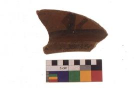 | Description / विवरण | Specimen of Potsherd black on red painted pottery. It is fine fabric in sharp contrast with painted design are executed in black pigment. |