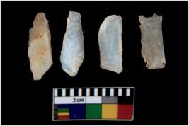 | Description / विवरण | There are n 4 utilized flake cores. There are multi directional irregular scar pattern on them. All of them are tapering at one end. |
