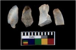 | Description / विवरण | There are n 4 utilized flake cores. There are multi directional irregular scar pattern on them. All of them are tapering at one end. |