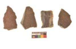 | Description / विवरण | There are n 4 utilized flakes. There are multi directional irregular scar pattern on both dorsal and ventral face of the flakes. Two are tapering at one end and two have sharp edges. |