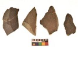 | Description / विवरण | There are n 4 utilized flakes. There are multi directional irregular scar pattern on both dorsal and ventral face of the flakes. One is tapering at one end and three have sharp edges. |
