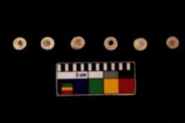 | Description / विवरण | Specimens of disc shaped perforated steatite beads. |