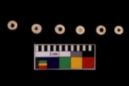 | Description / विवरण | Specimens of disc shaped perforated steatite beads. |