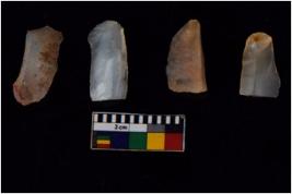 | Description / विवरण | Cores, with several broad fluted marks from almost all the sides indicating the detached blades from it. |