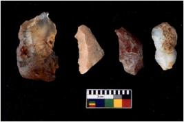 | Description / विवरण | There are n 4 cores; there are multidirectional irregular scar pattern on them. The reverse bulb and platform can be seen. |