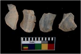 | Description / विवरण | There are n 4 utilized flake cores. There are multi directional irregular scar pattern on them. Two are tapering at one end and two have blunted edges. |