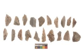 | Description / विवरण | There are n 20 utilized flakes. There are multi directional irregular scar pattern on both dorsal and ventral face of the flakes. Among them few of them have tapering edges, and few have flat base edges. |
