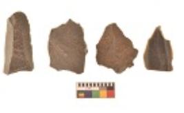 | Description / विवरण | There are n 4 utilized flakes. There are multi directional irregular scar pattern on both dorsal and ventral face of the flakes. Three are tapering at one end and one has sharp edge. |