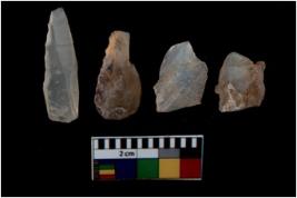 | Description / विवरण | There are n 4 utilized flake cores. There are multi directional irregular scar pattern on them. All of them are tapering at one end. |