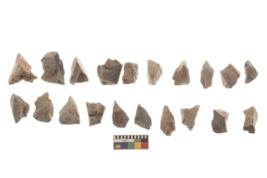 | Description / विवरण | There are n 20 utilized flakes. There are multi directional irregular scar pattern on both dorsal and ventral face of the flakes. All are sharp edges, and few have broken tip. |
