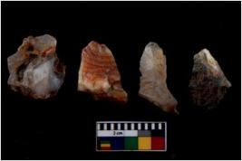 | Description / विवरण | There are n 4 cores; there are multidirectional irregular scar pattern on them. The reverse bulb and platform can be seen. |