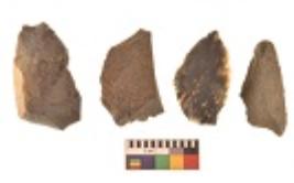 | Description / विवरण | There are n 4 utilized flakes. There are multi directional irregular scar pattern on both dorsal and ventral face of the flakes. Three are tapering at one end and one has sharp edge. |