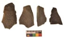 | Description / विवरण | There are n 4 utilized flakes. There are multi directional irregular scar pattern on both dorsal and ventral face of the flakes. Three are tapering at one end and one has sharp edge. |