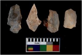 | Description / विवरण | There are n 4 utilized flake cores. There are multi directional irregular scar pattern on them. Three are tapering at one end and one has sharp edge. |