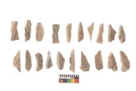 | Description / विवरण | There are n 20 utilized flakes. There are multi directional irregular scar pattern on both dorsal and ventral face of the flakes. Among them some of them have sharp edges, and few have broken tip. |