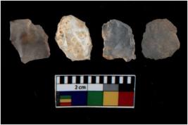 | Description / विवरण | There are n 4 utilized flake cores. There are multi directional irregular scar pattern on them. Two have blunted edges and two have round edges. |