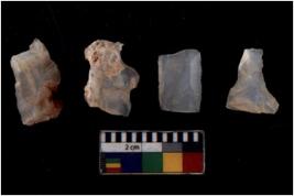 | Description / विवरण | There are n 4 of utilized worked cores. They show multidirectional irregular scar pattern. Two are tapering at one end. |