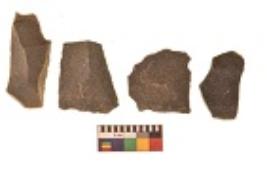 | Description / विवरण | There are n 4 utilized flakes. There are multi directional irregular scar pattern on both dorsal and ventral face of the flakes. Two are tapering at one end and two have blunted edges. |