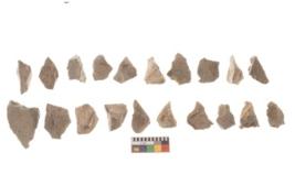 | Description / विवरण | There are n 20 utilized flakes. There are multi directional irregular scar pattern on both dorsal and ventral face of the flakes. All are sharp edges, and few have broken tip. |