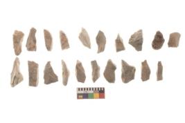 | Description / विवरण | There are n 20 utilized flakes. There are multi directional irregular scar pattern on both dorsal and ventral face of the flakes. All are sharp edges, and few have broken tip. |