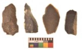 | Description / विवरण | There are n 4 utilized flakes. There are multi directional irregular scar pattern on both dorsal and ventral face of the flakes. Two are tapering at one end and two have sharp edges. |