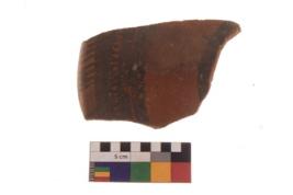 | Description / विवरण | Specimen of Potsherd black on red painted pottery. It is fine fabric in sharp contrast with painted design are executed in black pigment. |