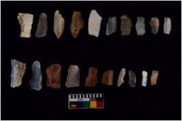 | Description / विवरण | There are n 20 Flake tool; There are multidirectional irregular scar pattern on them. few have blunt edges, Some of them are tapering at one end. |