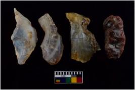 | Description / विवरण | There are n 4 cores; there are multidirectional irregular scar pattern on them. The reverse bulb and platform can be seen. |