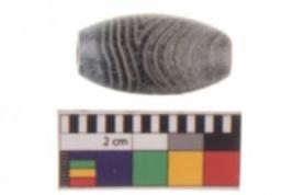 | Description / विवरण | Specimen of a barrel shaped perforated bead made of agate. |
