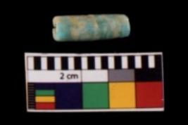 | Description / विवरण | Specimen of a long tubular shaped perforated bead made of faience. |