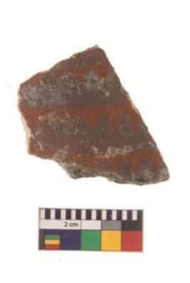 | Description / विवरण | Specimen of black on red ware with traces of decorative geometric Double arches painting. |