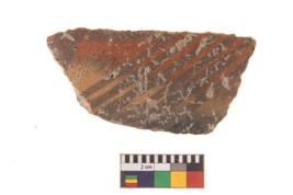 | Description / विवरण | Specimen of black on red ware with decorative geometric Parallel lines painting. |