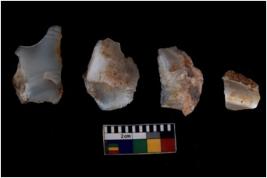 | Description / विवरण | There are n 4 of utilized worked cores and show multidirectional irregular scar pattern on both dorsal and ventral sides. Two are tapering at one end. |